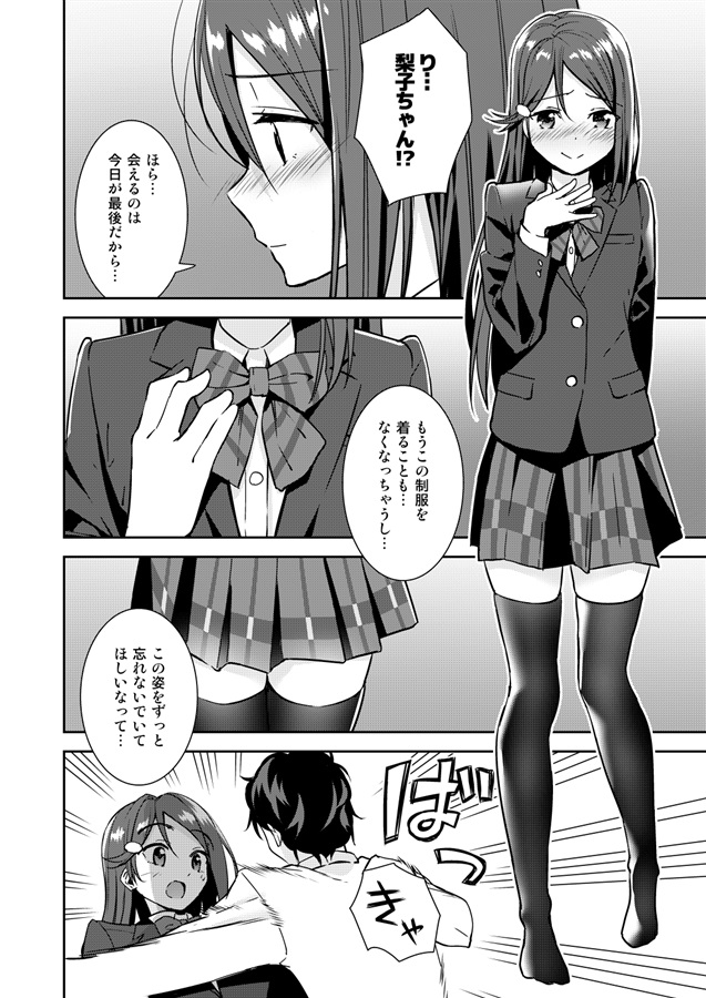 別れの時間が来るも梨子は彼を自分の家へ招き、思い出作りに制服姿でエッチする事に!